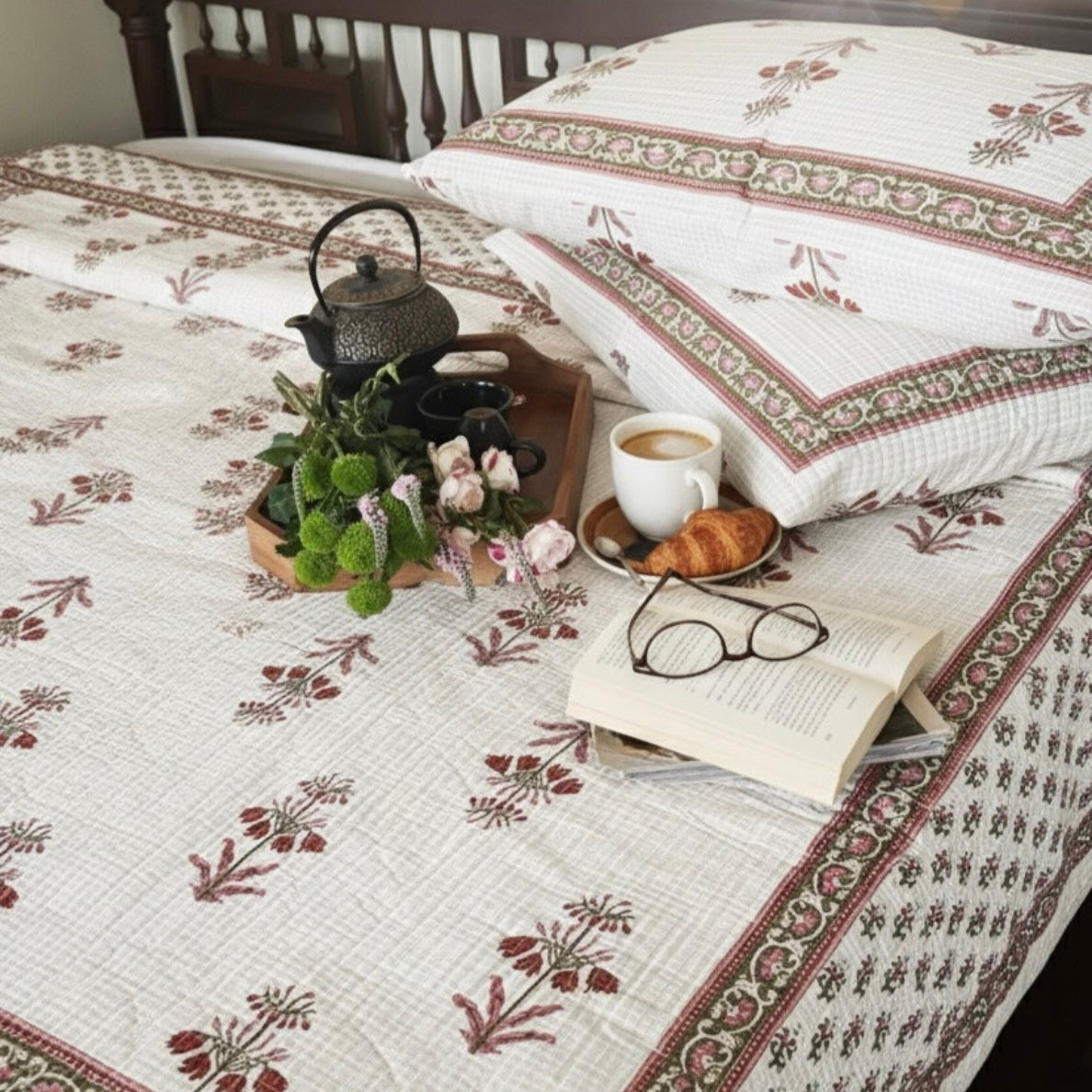 This quilt set blends understated elegance with everyday comfort—light, breathable cotton that’s perfect for the UAE climate, machine-washable, and timeless in style. A piece that brings natural beauty and quiet luxury into your home.